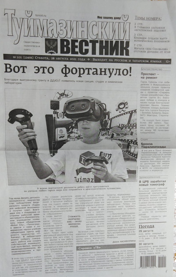 В "Туймазинском вестнике" от 28.08.2021 г. вышла статья о нашем Центре.